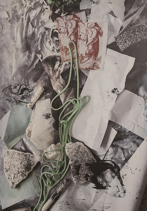 루마니아 출신의 바르바라 볼프(Barbara Wolff)와 독일 작가 카타리나 스퇴버(Katharina Sto··ver)가 만나 듀오를 이루어 베를린을 기반으로 활동하는 ‘펠레스 엠파이어’. 이 독특한 이름은 친구이던 두 작가가 2005년 같이 방문한 루마니아의 고성 ‘펠레스’를 본뜬 것이다. 르네상스·바로크·고딕·아르데코 등 다양한 양식이 위계 없이 뒤섞여 있는, 다분히 ‘포스트모던’적인 성안의 방들을 보고 영감을 얻었다고. 이처럼 다른 것들의 섞임에서 오는 긴장감을 작업의 원동력으로 삼고 ‘혼종성(hybridity)’을 주제로 다뤄온 이 듀오가 서울에서 첫 개인전을 연다는 소식을 들었을 때, 반가움이 앞섰다. 3년 전 뮌스터 조각 프로젝트에서 그들의 작품을 꽤 인상적으로 접한 기억이 있어서다. 무너지는 성의 테라스 이미지를 담은 기울어진 8m 높이의 설치물은 겉으로는 우스꽝스럽게 웅장한 건축양식을 비꼬는 제스처를 취하고 있지만, 안으로 들어가면 아담한 ‘바(bar)’로 변모한다. 그곳을 찾는 동시대 작가들과 만나 대화를 시도한 ‘소통’과 ‘실험’의 장이었다. 이들은 베를린에서도 다른 작가들을 초대해 전시를 하는 공간을 꾸리는 등 비슷한 유형의 프로젝트를 계속해오고 있는데, 한국에서는 어떤 전시를 보여줄지 기대감이 솟았다. 더욱이 그들과 협업을 하게 된 서울 삼청동 갤러리 바라캇 컨템포러리는 유달리 층고가 높은 1층 내부 구조 덕분에 매력적인 전시 공간이다. 코로나19의 여파로 작가들은 내한하지 못했지만, 다행히도 둘의 궁합은 성공적이었다. 작가들은 매끄러운 에폭시 재질의 살짝 얼룩덜룩한 갤러리 바닥을 재치 있게 활용했다. 갤러리 스태프가 바닥을 촬영해 A3 크기 용지로 출력한 후, 높다란 갤러리 벽면에 뒤덮듯이 붙여놓았다. 연한 갈색으로 똑같이 물들인 벽과 바닥에 그들의 그림과 조각 작품이 어우러진 광경은 꽤 근사한 시각적 희열을 선사한다. 이는 과거에 펠레스 성의 공주 방을 찍은 사진을 자신들의 아파트 거실 벽면에 붙여 재현한, 작가들이 즐겨 쓰는 방식을 활용한 것이다. “3차원적 작품을 2차원 방식으로, 혹은 그 반대로 보여준다”고 자신들의 작업을 설명하는 이 듀오는 “서로 다른 차원(dimension)에 생기는 ‘해석’의 차이에 관심이 있다”고 강조한다. 이처럼 이질적 조합에서 새로움을 창출하는 작업의 매력은 갤러리 벽에 걸린 ‘셀라돈’ 시리즈에서도 발견할 수 있다. 오묘한 연녹색 노끈이 눈길을 끄는 이미지의 조합이 4cm 두께의 제스모나이트 위에 프린트된 이 평면 작품들은 고려청자를 부르는 영어 명칭 ‘셀라돈(celadon)’과 17세기 희극의 주인공으로 ‘이상향(arcadia)’를 추구한 목동 ‘셀라돈’에서 동시에 차용한 것으로, 역설적으로 완벽한 유토피아는 어디에서도 찾을 수 없음을 뜻한다고 한다.
