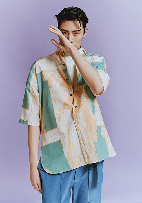 프린트 셔츠 1백55만원, 화이트 레더 톱 3백19만원, 블루 팬츠 1백29만원 모두 살바토레 페라가모.