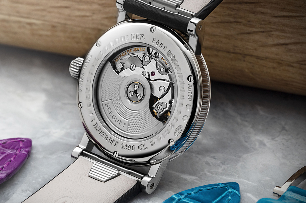 클래식 문페이즈 7787 플루티드 케이스 밴드를 갖춘 지름 39mm의 로즈 골드 케이스에 화이트 컬러의 그랑 푀 에나멜 다이얼을 장착했다. 아라비아 숫자 인덱스는 아브라함-루이 브레게의 첫 번째 손목시계와 탁상시계에 사용한 대표적인 ‘브레게 뉴머럴’ 스타일로 우수한 시인성과 우아함을 갖췄다. 12시 방향에 문페이즈 창이 위치하며, 6시 방향에 세팅한 긴 바늘로 가리키는 파워 리저브 인디케이터는 뛰어난 가독성이 특징이다. 파워 리저브를 표시하는 눈금은 앙증맞은 화살표로 표현했는데, 이는 1785년 발표한 포켓 워치 No.92의 디자인을 차용한 것이다. 2개의 배럴로 기능을 향상시킨 셀프 와인딩 무브먼트 591DRL로 구동하며, 실리콘 이스케이프먼트와 밸런스 스프링을 장착해 충격 완화에 우수한 동시에 자성의 영향을 받지 않는다. 두께는 3.01mm에 불과하다.