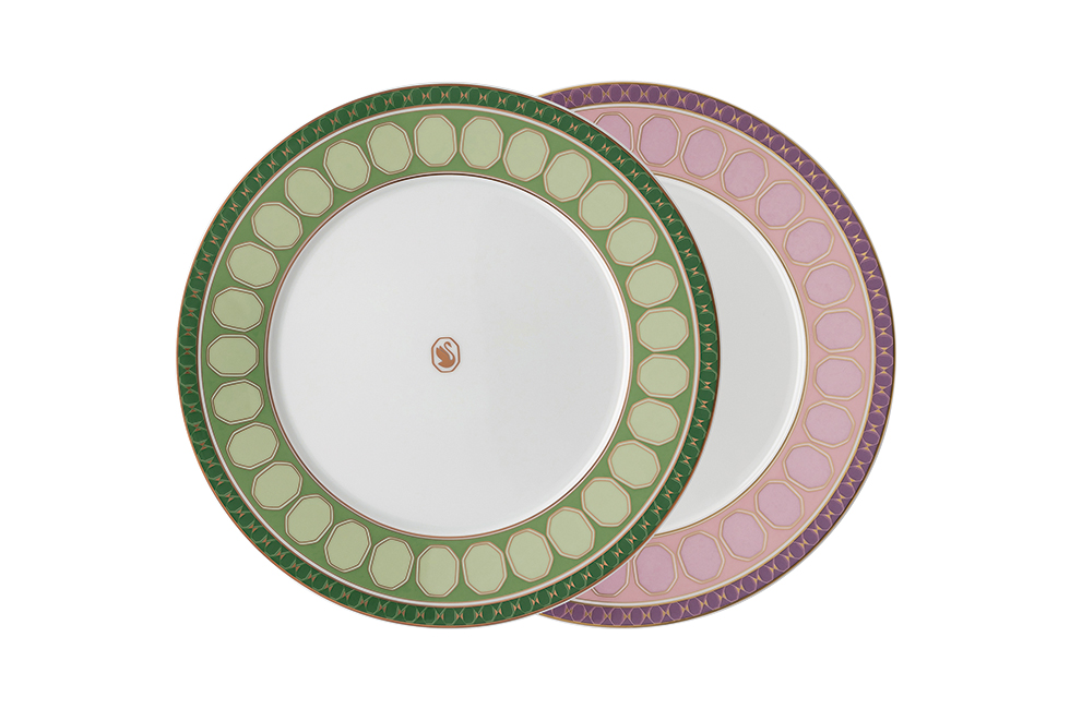19세기 오스트리아 예술 운동에서 영감받은 우아하고 세련된 매력의 레트로 퓨처리즘 감성을 담은 이번 테이블웨어에서 먼저 눈에 띄는 것은 비비드한 그린과 핑크 컬러다. 여기에 모던하고 현대적인 스와로브스키만의 디자인 감성을 그대로 녹여냈다. 포슬린 장인 기업 로젠탈과 협업하면서 두 브랜드의 장점과 헤리티지를 제품에 모두 담아낸 것. 가장 돋보이는 것은 스와로브스키의 모티브인 팔각형이다. 손잡이는 물론 디자인 전반에 팔각형 모티브를 적용해 스와로브스키만의 다채로운 컷 디테일을 세밀하게 표현했다. 여기에 금색 컬러 테두리의 독특한 그래픽 장식을 입혀 마치 갤러리의 작품과 같은 감성을 전한다. 뚜껑에 얹은 크리스털 포인트 역시 놓칠 수 없는 부분이다. 크리스털 리드와 중앙에는 스완 각인 스탬프를 더해 현대적이면서도 럭셔리한 분위기를 한층 강조했다. 티 컵 및 에스프레소 컵 세트와 두 가지 사이즈의 플레이트, 그리고 커피 포트와 화병 등 다양한 제품 라인으로 선보여 다이닝 테이블을 통일감 있게 연출 가능하며, 각각의 제품을 개별적으로 구입해 리빙 공간 분위기에 맞춰 장식할 수도 있다. 문의 1522-9065