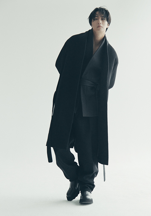 벨티드 디테일 블랙 재킷과 코트 모두 가격 미정, 밴딩 웨이스트 테일러드 팬츠 2백84만5천원 모두 에르메네질도 제냐. 청키 솔 블랙 앵클부츠 가격 미정 엠포리오 아르마니. |