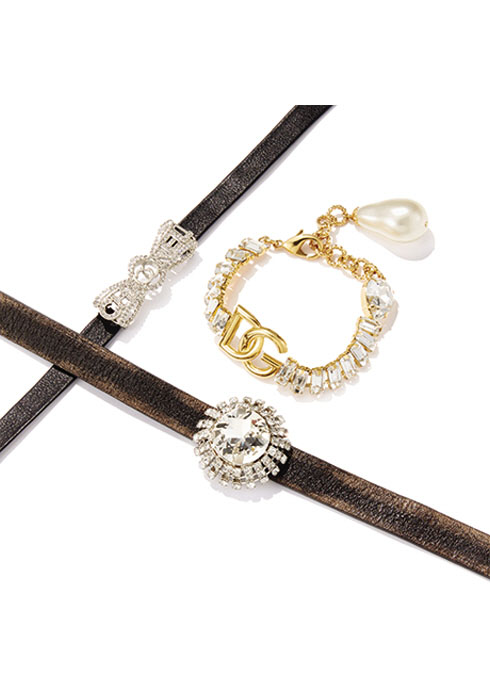 브라스에 크리스털로 장식한 로고 포인트의 초커 가격 미정 돌체앤가바나. 문의 02-3442-6888.