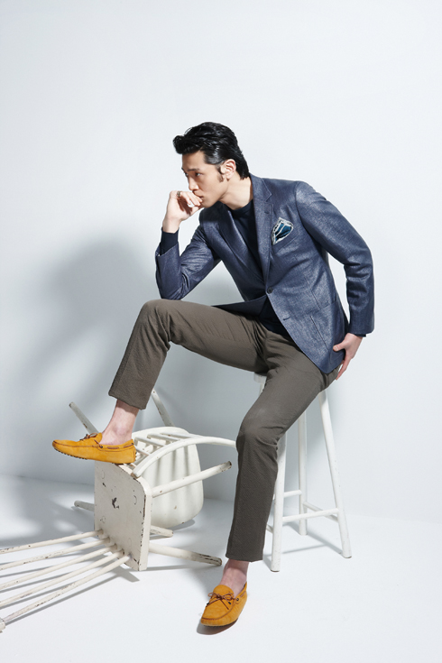 세련된 컬러의 리넨 재킷은 봄철, 쿨한 비즈 니스 캐주얼 룩을 연출하는 데 빼놓으면 안 될 머스트 해브 아이템. 여기에 컬러풀한 슈 즈를 매치하면 시크하면서도 강렬한 이탤리 언 스타일을완성할수있다. 네이비 리넨 재킷, 블랙 티셔츠, 카키 팬츠 모두 가격 미정 에르메스. 옐로 스웨이드 고미노 슈즈 58만5천 원토즈.도트패턴네이비포켓스퀘어2만9천원 니 나리치 맨. 비.제로원 마블 링 1백만원대 불가리.