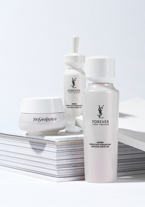 입생로랑 다크 스폿, 광채, 피붓결, 탄력을 동시에 책임지는 멀티플레이어. 4-in-1 멀티 광채 젤 크림(50ml 15만원대), 4-in-1 멀티 광채 세럼(30ml 15만원대), 포에버 라이트 크리에이터 토너(200ml 7만6천원).
