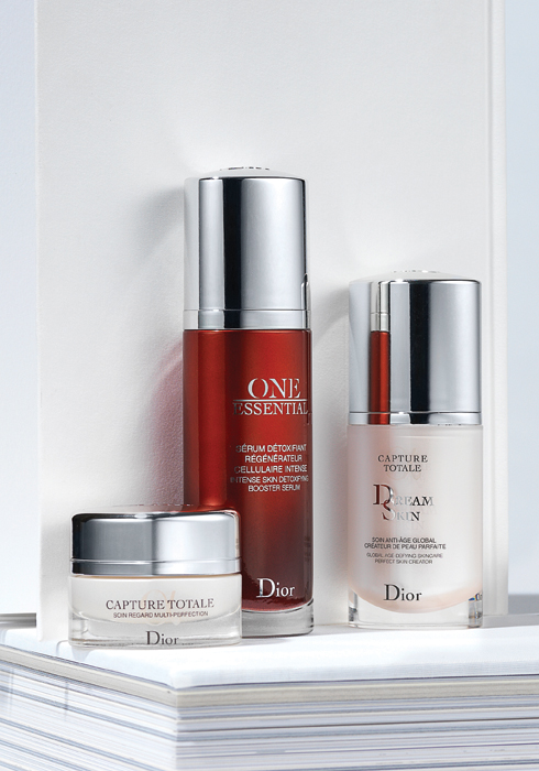 디올 피부 속 보이지 않는 독소를 정화해 본연의 광채를 일깨워주며, 고르지 않은 피붓결을 정돈한다. 캡춰 토탈 아이크림(15ml 12만5천원), 원 에센셜(50ml 17만5천원), 캡춰 토탈 드림 스킨(30ml 14만원).