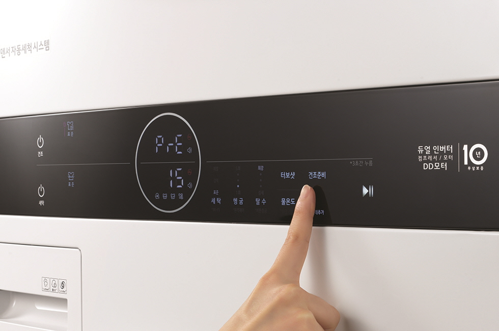 최근 아파트 주방과 발코니가 확장됨에 따라 세탁과 건조를 위한 공간이 줄어드는 추세다. 이에 세탁기와 건조기를 나란히 두기보다 직렬 구조로 설치하는 것을 선호하는 경향이 두드러지는 데 주목한 LG전자가 일체형 디자인의 원바디(one body) 세탁건조기 ‘LG 트롬 워시타워’를 국내 최초 출시했다. 하단의 드럼 세탁기, 상단의 건조기를 완벽하게 결합한 형태의 ‘LG 트롬 워시타워’는 기존의 동급 제품을 아래 위로 이어 설치할 때보다 높이가 87mm가량 낮아졌다. 바닥에서 건조기 도어 중심부까지의 높이는 148.3cm 정도. 별도의 받침대를 딛고 올라서지 않고도 세탁물을 넣고 빼거나 필터를 관리하기 매우 편리하다는 의미다. 한편 불필요한 선과 여백 없이 매끄럽게 이어지는 심리스(seamless) 디자인의 제품 정중앙에는 세탁과 건조 과정을 한번에 조작할 수 있도록 통합 설계한 풀 터치 디스플레이, 원바디 런드리 컨트롤이 위치한다. 세탁기와 건조기에 손을 높이 뻗거나 리모컨을 사용해 별도로 세팅해야 했던 과거에 비하면 매우 간편하고 스마트해진 방식이다. 한눈에 보이는 여러 기능과 코스를 확인한 뒤 직접 버튼을 눌러 선택 가능해 훨씬 심플하고 직관적이다.
