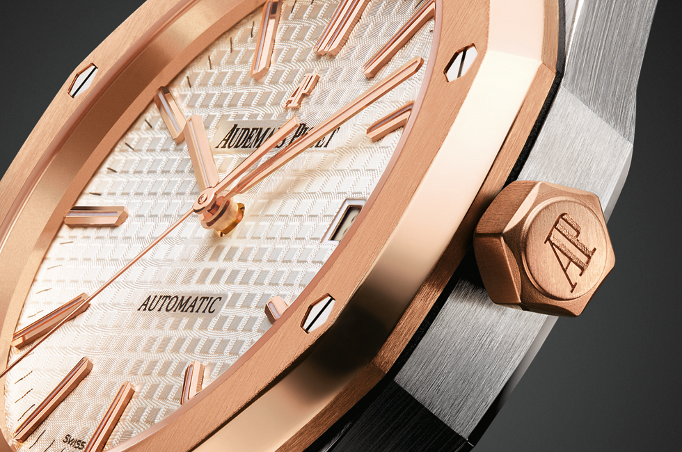 또 하나, 로열 오크만의 순수한 아이덴티티는 다이얼 패턴이다. 이는 ‘프티 타피스리’ 모티브 디자인으로, 가로세로 각 0.7mm의 작은 사각형과 그물망을 연상시키는 매우 작은 홈이 동시에 겹치게 제작해 우아함을 부여함과 동시에 타의 추종을 불허하는 스타일로 자리 잡게 했다. 그뿐 아니라 브랜드 인하우스 전문가가 타피스리 문양을 만들기 위해 1시간 동안 공을 들이는 등 정교한 기술로 다이얼을 예술로 승화하고, 기술력을 더해 로열 오크의 상징으로 거듭났다.