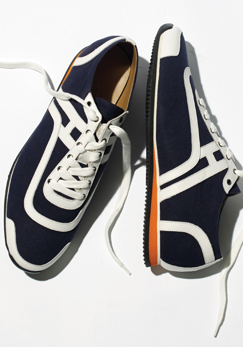 코튼 소재로 가벼운 착용감을 자랑하며 화이트 컬러 라인이 포인트인 스니커즈 90만원대 에르메스.