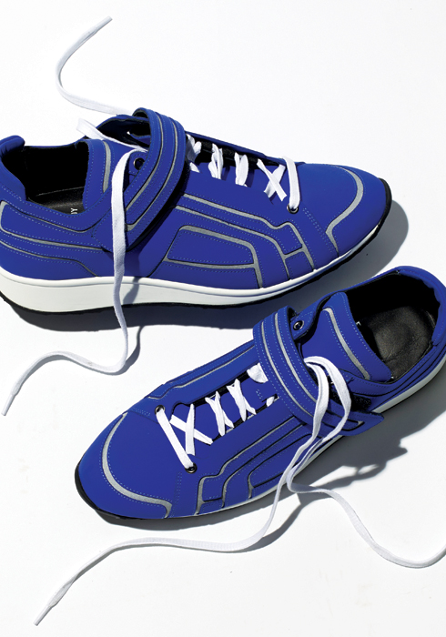 탁 트인 바다가 떠오르는 청량한 블루 컬러의 스니커즈 93만원 피에르 아르디.