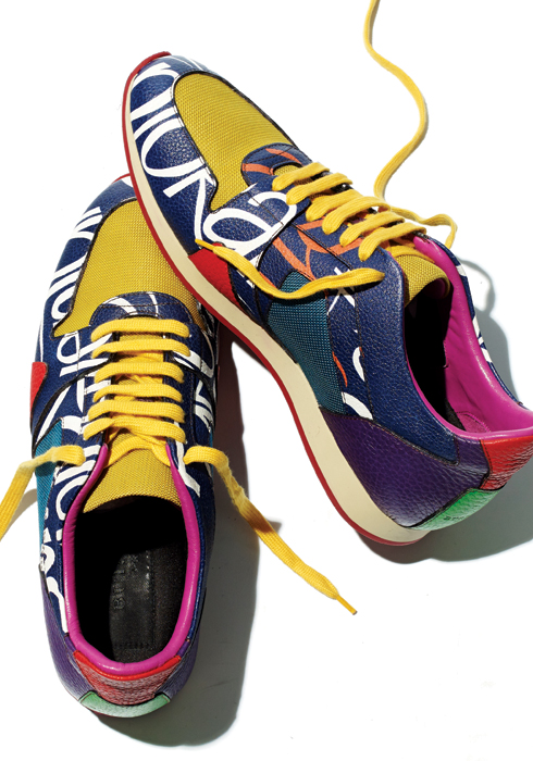 옐로, 레드, 퍼플 등 비비드한 컬러가 조화를 이루는 그레이니 레더 스니커즈 92만원 버버리.