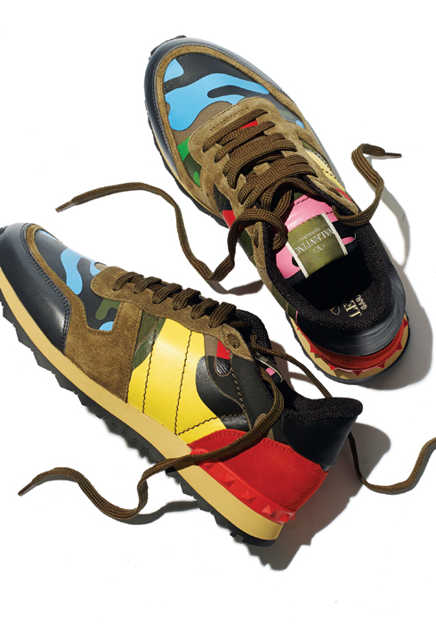카무플라주 패턴과 스터드 장식이 스타일리시한 부드러운 양가죽 소재 스니커즈 1백만원 발렌티노 by 분더샵.