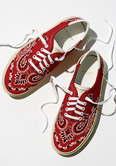 경쾌한 반다나 프린트가 인상적인 캔버스 소재의 스케이트 레이스업 스니커즈 58만5천원 생로랑.