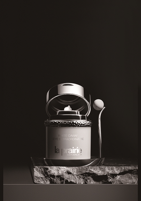 라프레리는 빛과 형태의 상관관계를 연구해, 또 한 번 빛의 과학에서 새로운 장을 열었다. 형태와 평면에 따라 빛이 작용하는 원리를 바탕으로, 눈썹의 우아한 곡선, 눈꺼풀의 윤곽, 숨겨진 속눈썹 라인이 만들어내는 섬세한 눈의 구조를 연구한 것. 빛과 형태에 대한 건축가 르 코르뷔지에(Le Corbusier)의 언급에서 영감을 얻은 라프레리의 과학자들은 눈가를 3차원적 시점에서 탐구하며 빛이 형태를 드러내는 방법과 형태가 빛을 드러내는 방법을 모색했다. 그 결과, 곡선과 기울기, 대비와 그림자를 만들어내는 눈의 독특한 구조에 광채를 선사해줄 풍부하면서도 섬세한 포뮬러의 ‘화이트 캐비아 아이 엑스트라오디네어’가 탄생했다. 2019년 라프레리는 이미 피부 광채를 색소와 빛 반사의 함수로 표현한 빛의 방정식을 선보였다. 그러나 눈가의 경우 빛의 방정식을 적용하기 위해서는 또 다른 요소를 더해야 한다는 걸 깨달았다. 눈의 3차원적 구조 때문에 눈가의 빛이 색소와 빛 반사뿐만 아니라 형태에 따라서도 달라지기 때문. 색소와 빛 반사는 피부 상태에 작용해 빛의 질과 강도를 결정한다. 그리고 형태는 반사된 빛의 강도에 따른 공간 분포를 조정해 그림자와 빛의 대비 패턴을 만든다. 화이트 캐비아 아이 엑스트라오디네어는 이 모든 요소, 즉 색소(colour), 빛 반사(reflection), 형태(shape) 등을 다루어 보다 완벽한 아이 케어에 가까워지도록 ‘설계’되었다