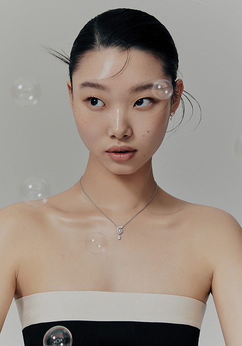 스며들 듯 번지는 다이아몬드 빛으로 샤넬 향수 N°5를 구현했다. 향수 네이밍을 모티브로 한 숫자 모양 펜던트 중앙에 0.41캐럿 라운드 컷 다이아몬드를 세팅하고, 메인 스톤을 중심으로 49개의 라운드 컷 다이아몬드를 세팅해 광채를 극대화했다. 마지막으로 중앙 하단을 1개의 페어 컷 다이아몬드로 장식해 마법 같은 향수 한 방울을 표현했다. 이터널 N°5 네크리스 가격 미정 샤넬 화인 주얼리.