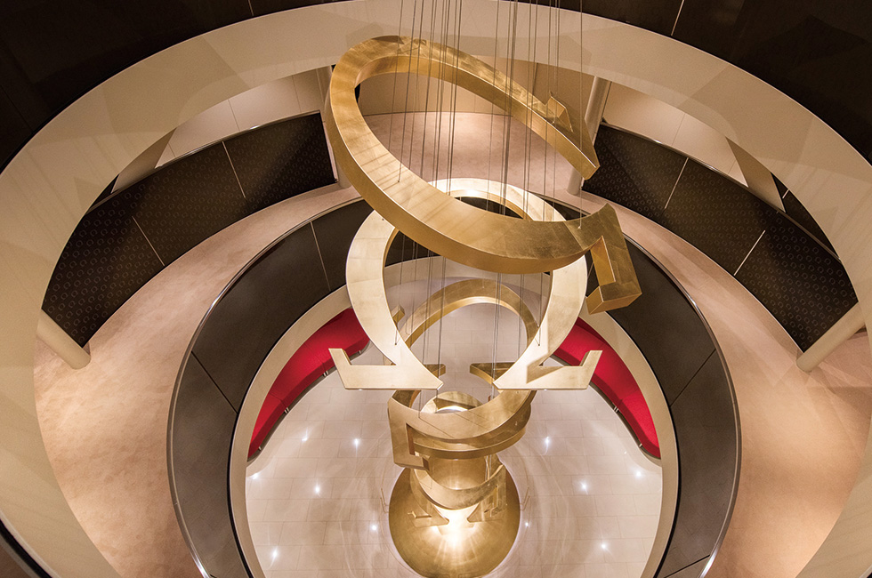 오메가 부스 안에 설치된, 브랜드를 상징하는 로고로 만든 조형물.