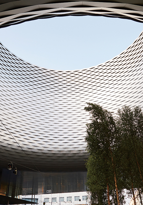거대한 원형 우주선을 연상케 하는 메세 바젤 센터의 상징적인 건축물.