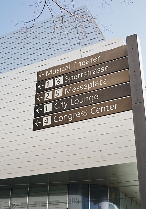 센터 앞에 설치된, 관람객과 여행객을 위한 이정표.