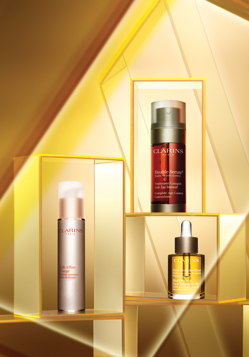 V 리프팅 에센스 50ml 8만8천원, 더블 세럼 30ml 12만원, 페이스 트리트먼트 오일 30ml 6만2천원 모두 클라란스.