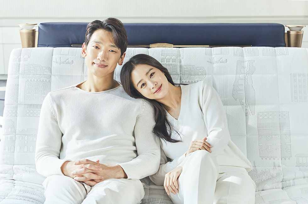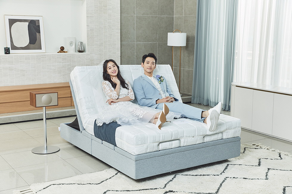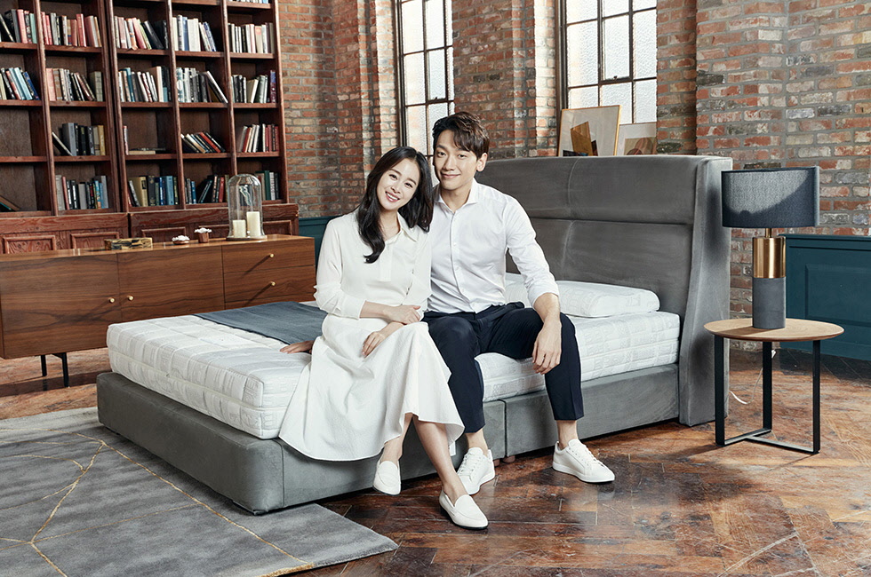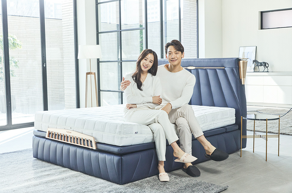 김태희·비 부부가 선택한 모델은 라클라우드 천연 라텍스 매트리스를 더한 퀸 사이즈(W1,620 X D2,240 X H1,210mm) 라클라우드 파라오 모션케어(마제스티 블루 컬러).