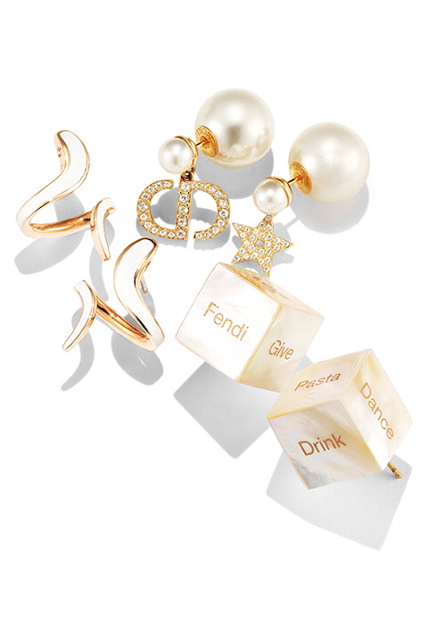 다미아니 에덴 이어링 다미아니의 시그너처인 스네이크 모티브의 핑크 골드 화이트 세라믹 이어링 2백89만원. 문의 02-3213-2141