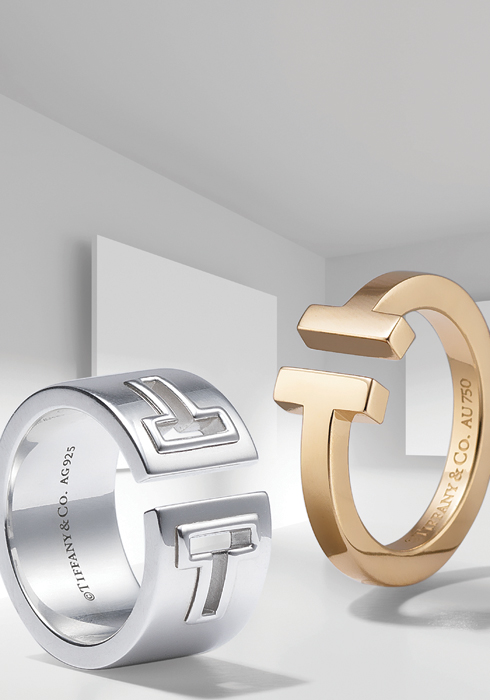 (왼쪽부터) 티파니에서 새롭게 선보이는 TIFFANY T 컬렉션. 스털링 실버 재질의 링은 가격 미정, 옐로 골드 링은 1백만원대 모두 티파니. |