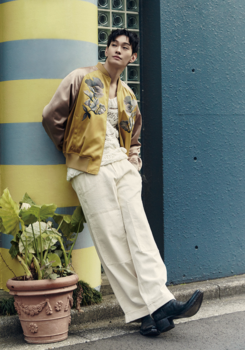 옐로 컬러의 오리엔탈 플라워 자수 보머 재킷 4백22만5천원, 화이트 컬러의 플로럴 니트 톱 2백17만5천원, 화이트 팬츠 가격 미정 모두 에트로. 블랙 컬러의 가죽 부츠 2백7만원 프라다.