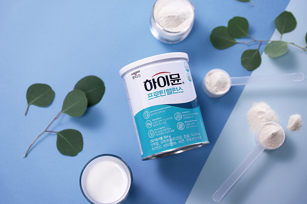 단백질은 수분 다음으로 우리 몸을 구성하는 요소다. 근육의 구성 성분일 뿐만 아니라 체내 에너지를 생성하고, 외부 침입에 맞서는 항체와 호르몬, 그리고 효소를 만드는 역할을 한다. 30대 이후부터 근육이 매년 약 1% 사라진다고 한다. 나이가 들수록 근 손실 속도가 빨라지며, 이에 따라 면역력이나 체력 저하 등 다양한 문제가 생긴다. 이때 단백질을 충분히 섭취하면 근 손실은 막아주고 노화 현상은 예방할 수 있다. 또 단백질은 면역력과 관련 있는 항체 생성에 도움을 주는 성분이다. 그러므로 면역력을 높이기 위해서는 충분한 단백질 섭취가 필요하다. 체내 단백질이 부족하면 면역 체계가 제대로 작동하지 못해 각종 질병에 쉽게 노출되고, 에너지 공급원이 부족해져 쉽게 피로감이 찾아온다. 단백질을 충분히 섭취해야 우리 몸이 면역 체계를 정비하면서 회복을 위한 집중을 시작한다. 또 단백질은 종류에 따라 체내 소화 시간이 다르기에 고루 섭취하는 게 중요하다. 하이뮨의 장점은 동물성 단백질과 식물성 단백질을 동시에 골고루 섭취할 수 있다는 것이다. 시중에 많은 단백질 영양제가 나와 있지만, 다섯 가지 단백질을 한 번에 담은 것은 손에 꼽을 정도다. 하이뮨은 동물성 단백질과 식물성 단백질을 6:4 비율로 구성했다. 분리유단백, 필수아미노산이 풍부한 농축유청단백, 우유 단백질을 눌러 담은 농축유단백, 그리고 식물성 분리대두단백과 프리미엄 산양유 단백질을 이상적으로 배합해 다섯 가지 단백질의 균형을 이루는 데 초점을 맞췄다. 하이뮨 1잔에는 20g의 단백질이 들어 있는데, 이 양은 건강기능식품 1일 섭취량 기준의 166%를 충족하는 양이다. 여타 ‘단백질 보충제’와 달리 하이뮨은 균형 잡힌 영양 설계로 적절한 단백질 섭취뿐 아니라 체계적인 영양 관리 솔루션도 함께 제시한다. 먼저, 근육과 함께 뼈 건강을 위한 영양도 강화했다. 뼈와 치아 형성에 필요한 칼슘과 신경, 근육 기능 유지에 필요한 마그네슘의 이상적 비율인 2:1로 배합했다. 여기에 칼슘과 인 흡수 이용에 필요한 비타민 D, 단백질 및 아미노산 이용에 필요한 비타민 B6를 한국인 영양 섭취 기준에 기반해 균형 있게 담았고, 세포분열 활성과 정상적인 면역 기능을 위한 아연을 추가했다. 단백질 대사와 에너지 생성에 필요한 판토텐산도 함유했다. 체내에서 합성되지 않아 반드시 섭취해야 하는 아미노산인 콜라겐(피부, 연골, 결합조직 생성에 중요)과 류신도 담고 있다. 유산균의 먹이로 장내 유익균 증식과 유해균 억제 기능을 갖춘 프리바이오틱스인 프락토올리고당으로 장 건강까지 한 번에 챙길 수 있다는 것도 하이뮨만의 장점이다. 유당 역시 자사 우유 대비 1/5 수준으로 낮춰 우유를 잘 먹지 못하는 사람도 섭취 가능하다. 일동 후디스만의 기술력이 담긴 FB(Fluid Bed) 과립 공법으로 물에도 잘 녹는 프로틴 밸런스로 물이나 두유 등에 타서 섭취하면 훌륭한 영양 간식이 된다. 그릭 요거트에 섞어 견과류나 블루베리를 올려 먹으면 훌륭한 아침 식사 대용으로 손색이 없다. 게다가 안전하고 깨끗한 음식으로 인식되는, 유대교 율법에 의해 식재료와 조리 등의 과정을 거친 음식임을 인증하는 코셔 마크와 이슬람 율법에 따라 엄격하게 생산해 할랄 인증을 받은 단백질 원료를 사용했다. 캔(틴) 포장은 플라스틱이나 유리, 종이 등 여타 포장 용기에 비해 산소 등의 기체와 수분, 그리고 광원 차단성이 우수해 식품을 안전하게 장기간 보존할 수 있다. 열로 인한 영양 손실을 줄여주는 ‘드라이 블렌딩’ 공법으로 영양 성분을 최소화했으며, 입자 하나하나를 그래뉼화하는 ‘그래뉼 & FB 공법’으로 일관된 경도와 함량을 유지해 맛과 성분이 균일하다. 하이뮨 프로틴 밸런스와 함께라면 영양 보충이 필요한 성장기 아이들뿐 아니라 면역력 증진과 단백질 섭취가 필요한 남녀노소 누구나 간편하고 맛있게 균형 잡힌 영양을 섭취할 수 있다. 유익함으로 꽉 차 있는 하이뮨과 함께 건강한 라이프스타일을 유지해보자.