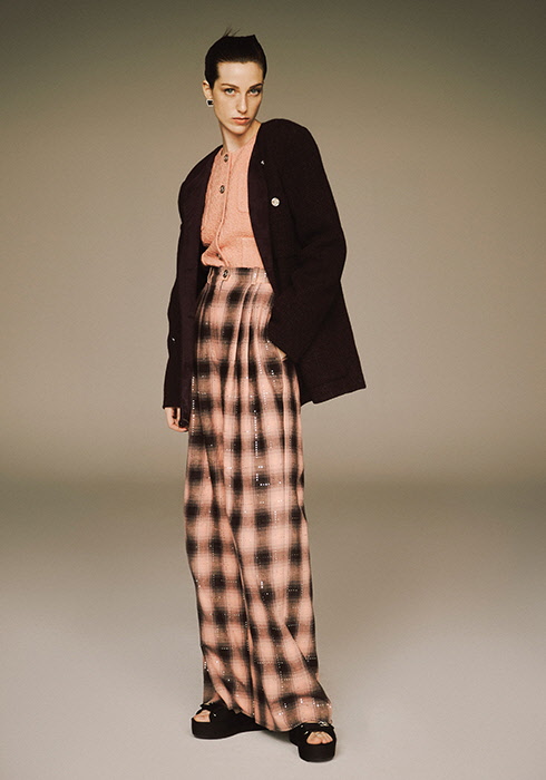 판타지 울 트위드 재킷, 울 트위드 이너 재킷, 코튼 트윌 팬츠, 그로그랭 소재 샌들, 메탈 이어링 모두 가격 미정 샤넬. |