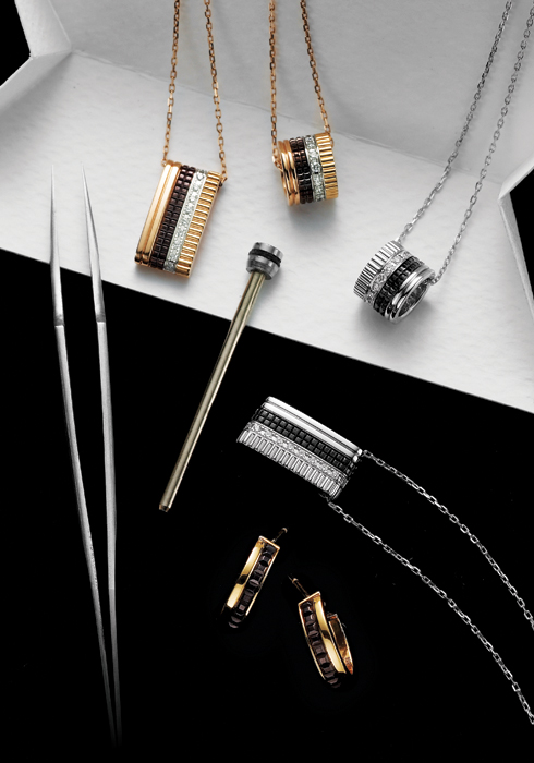 기존 쿼트르 클래식의 초콜릿 골드 모티브를 블랙과 화이트 골드를 매치한 블랙 에디션, 세 가지 골드에 화이트 세라믹을 결합한 화이트 에디션으로 변주했다. 다이아몬드를 매치한 화려한 디자인도 아름답다. 모두 부쉐론.