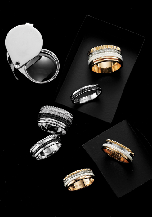 옐로, 핑크, 초콜릿, 화이트까지 네 가지 컬러의 골드 밴드를 결합한 초콜렛 쿼트르 클래식 컬렉션. 프랑스어로 숫자 ‘4?를 의미하는 쿼트르(quatre)는 강한 결속력을 상징해 커플 링으로 제격이다.