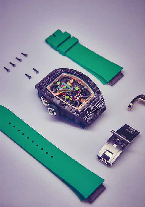 이를 뒷받침하는 워치메이킹 기술이 어우러져 탄생하는 리차드 밀의 시계는 이들에게 한계라는 것이 존재하는지 의문을 품게 만든다. 올해도 마찬가지였다. 지난 1월 SIHH 2019에서 공개한 봉봉 컬렉션은 업계에 전례 없던 캔디, 페이스트리, 프루트 등을 콘셉트로 한 톡톡 튀는 얼굴의 시계. 달콤한 컵케이크, 젤라토, 마시멜로, 롤리팝 등 어린 시절 즐겨 먹던 디저트 모양 장식을 케이스, 다이얼, 스트랩 곳곳에 더했다. 컬렉션을 구성하는 총 10가지의 타임피스는 브랜드를 대표하는 모델 RM07-03, RM16-01, RM37-01의 배리에이션으로 케이스, 무브먼트 등 기존 시계의 커다란 틀과 기능은 유지했다. “색상을 자유롭게 활용해 컬렉션을 재해석하고 싶었어요. 자연스럽게 팝 아트에서 영감을 얻은 요소들을 끌어내게 됐죠. 이번 유니섹스 컬렉션을 위해 총 60개의 컬러 팔레트를 만들었습니다.” 아티스틱 디렉터 세실 게나의 설명처럼 봉봉 컬렉션은 그래픽, 감성, 색채가 어우러진 팝 아트의 영역까지 넘나드는 특별한 타임피스다.