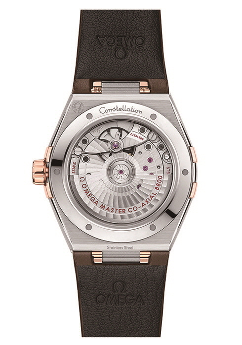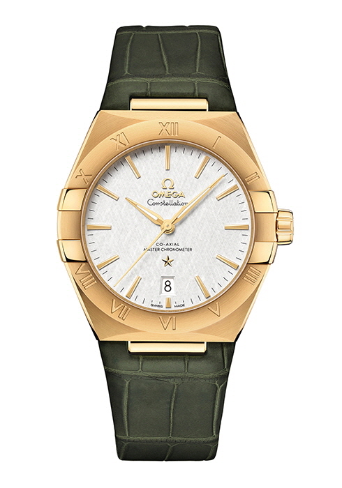 코-액시얼 마스터 크로노미터 39MM. 다이얼을 장식한 핸즈, 오메가 로고, 컨스텔레이션 스타와 인덱스 모두 세드나 골드™ 소재로, 우아한 품격을 느낄 수 있다. 3 유니크한 텍스처의 로듐-그레이 다이얼이 멋스러운 컨스텔레이션 오메가 코-액시얼 마스터 크로노미터 39MM. 베젤에 새긴 로마숫자 인덱스를 포함해 다이얼 전체에 블랙 컬러로 포인트를 가미, 시크한 무드를 강조했다. 4 화이트 실버 다이얼을 장착한 컨스텔레이션 오메가 코-액시얼 마스터 크로노미터 39MM. 측면을 4개의 클러로 장식한 18K 옐로 골드 케이스와 올리브 레더 스트랩의 조화가 감각적이다. 5 긁힘에 강한 돔형 사파이어 크리스털 케이스 백을 통해 타임피스 중심에 자리한 오메가 코-액시얼 마스터 크로노미터 칼리버 8800의 움직임을 확인할 수 있다. 55시간의 파워 리저브, 50m 방수 기능을 제공하며 1만5,000가우스 이상의 자기장 환경에서도 영향을 받지 않는 탁월한 항자성을 입증받았다. 6 스틸 & 세드나 골드™ 소재의 남성용 컨스텔레이션 워치. 다이얼 6시 방향에 커다란 날짜창이 위치하며 다이아몬드 인덱스로 품격을 더했다. 7, 9 실크 양각 처리한 블루 다이얼, 블루 레더 스트랩을 매치한 세드나 골드™ 소재의 컨스텔레이션