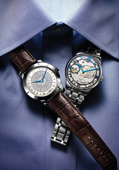 (왼쪽) 티쏘 헤리티지 네비게이터 올해 새롭게 선보인, 서울 타임 존이 포함된 한정판 에디션. 다이얼에 전 세계의 시간 정보를 모두 담은 독특한 모델이며 COSC 인증을 받았다. 1백79만원.