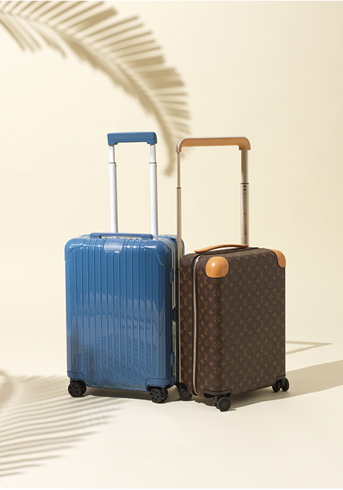폴리카보네이트 소재 에센셜 컬렉션 아주르 컬러 캐빈 사이즈 90만원대 리모와. 문의 02-2056-2257. 기내 반입이 가능한 사이즈로 선보이는 하우스의 아이코닉한 호라이즌 55 4백만원대 루이 비통. 문의 02-3432-1854 |