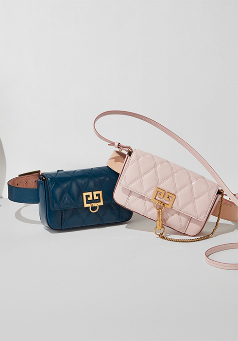 크로스로도 맬 수 있도록 탈착되는 긴 스트랩이 함께 달려 있다. 모두 18X10cm 1백35만원 지방시.