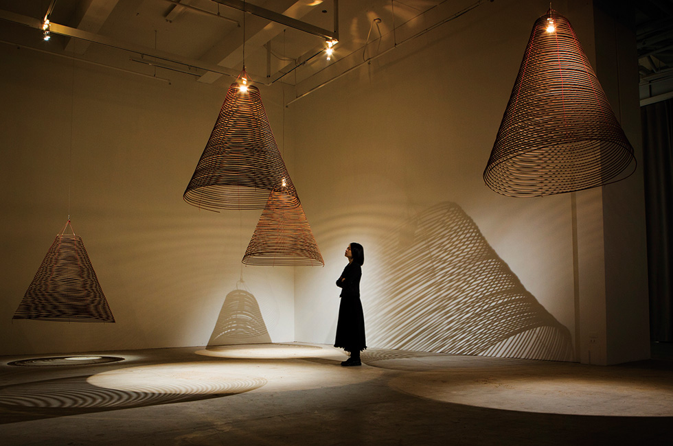 3 제14회 광주비엔날레 출품작인 차이자웨이(Charwei Tsai)의 ‘나선형 향 만트라 – 반야심경’(2014). 나선형 향 3점, 각 지름 150cm, 작가·타이베이 TKG+ 제공. 타이베이 TKG+ <우리는 무에서 빙빙 돌며 왔다>전 설치 모습. Photo_Steve Hung. ※ 2, 3 이미지 제공_광주비엔날레
