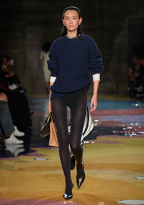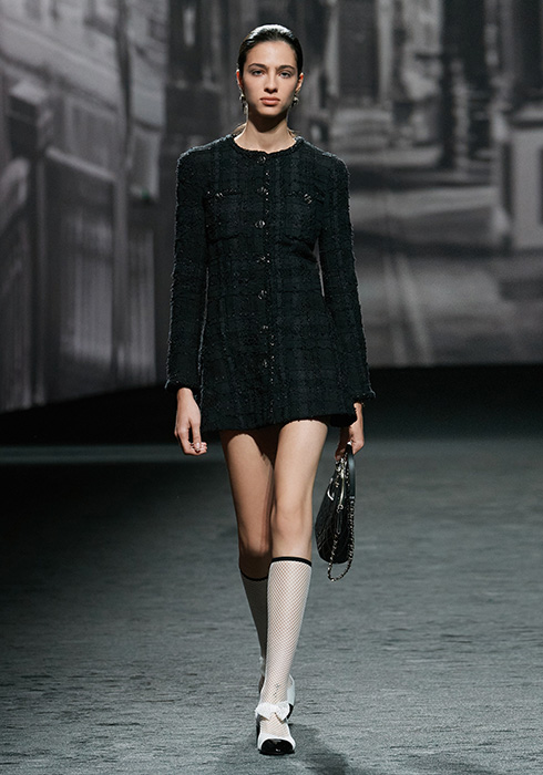 관능적인 룩을 연출할 때만 활용할 수 있는 것이라 생각했던 망사 스타킹이 이번 시즌에는 순수함과 사랑스러움을 대변하는 아이템으로 변신했다. 샤넬 쇼에서는 리본 포인트가 있는 슈즈에 화이트 컬러의 망사 스타킹 디자인을 더해 클래식한 트위드 재킷과도 잘 어울리는 룩을 완성했다. 그리고 디올 여성 컬렉션에선 페미닌한 룩에 블랙 망사 스타킹을 매칭해 러블리한 모습을 표현했다. 발리 여성 쇼에서 선보인, 트임이 있는 네이비 원피스에 실키한 사이하이 글리터 스타킹을 더한 스타일링은 고급스러운 매력을 선사한다.