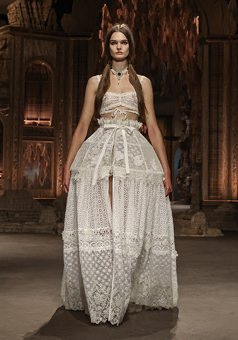 동양 전통 복장을 재해석한 겐조의 아우터부터 디올의 코르셋과 부라노 레이스, 그리고 궁정에서 착용한 와이드 스커트를 떠올리게 하는 룩까지. 이번 컬렉션에서는 유독 전통으로부터 새로운 매력을 이끌어내는 현대적인 장인 기술의 힘을 엿볼 수 있었다. 특히 구찌에서는 동양의 멋을 제대로 뽐냈는데, 비비드한 컬러감이 돋보이는 자수를 넣은 중국식 치파오와 프린지로 만든 페이스 주얼리, 선글라스로 전통미를 강조하면서도 현대적인 개성을 마음껏 드러내는 룩을 감상할 수 있었다.