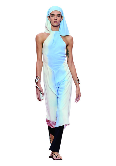 40년 전 패션 아이콘인 그레이스 존스가 착용하면서 세상에 등장한 후디드 드레스. 최근엔 케이트 모스, 블랙핑크의 로제, 마고 로비가 레드 카펫에서 착용하면서 다시금 주목받기 시작했다. 이번 시즌에는 생 로랑, 알라이아, 페라가모 등 다수의 패션 하우스에서 선보였는데, 공통점은 섬세하게 주름이 진 드레이퍼리 드레스나 우아한 실루엣 드레스에 후드를 결합했다는 것. 생 로랑의 쇼에서는 후디드 드레스의 흘러내리는 듯한 실루엣과 대비되는 블랙 컬러의 시크한 선글라스를 매치해 실험적인 시도를 한 점이 돋보인다.