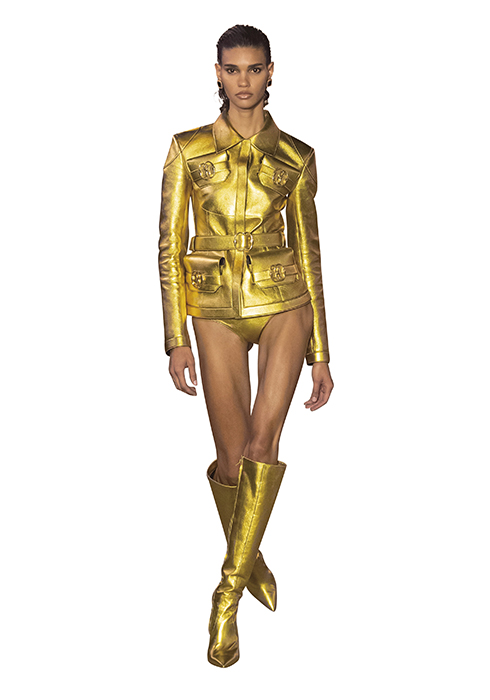 (오른쪽) No pants look_BALLY 몇 해 전부터 하프 팬츠, 쇼츠, 그리고 로 라이즈 팬츠까지, 팬츠 길이가 점점 짧아지더니 올해는 진정한 하의 실종 단계에 이르렀다. 이번 S/S 시즌 컬렉션에서 가장 큰 관심을 받았던 보테가 베네타의 17번 룩이 가장 좋은 스타일링 참고서가 될 것. 루스한 핏의 네이비 니트 상의에 하의는 스타킹만 신어 시크한 룩을 완성했다. 실제로 이런 룩을 입을 수 있을까 하는 생각도 잠시, 이 시대 패션 아이콘 켄달 제너가 너무도 우아하게 소화하면서 다시 한번 큰 이슈가 되었다. 또 발리 쇼에서는 골드 컬러의 재킷, 팬티, 부츠로 강렬한 룩을 완성했고, 에트로 남성 쇼에서는 셔츠를 팬티 안에 넣어서 입는 파격적인 시도도 볼 수 있었다.