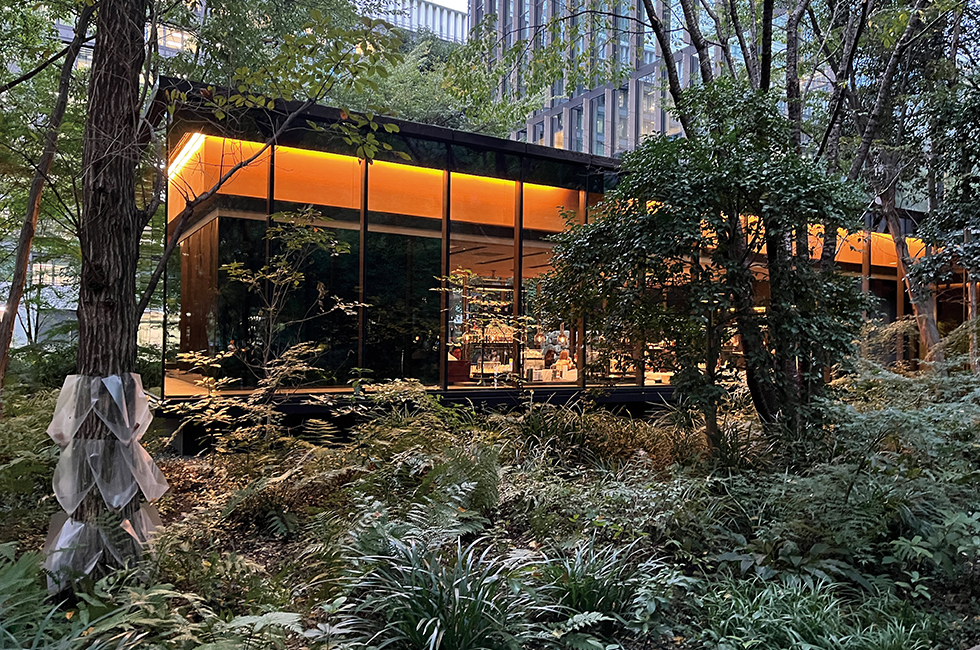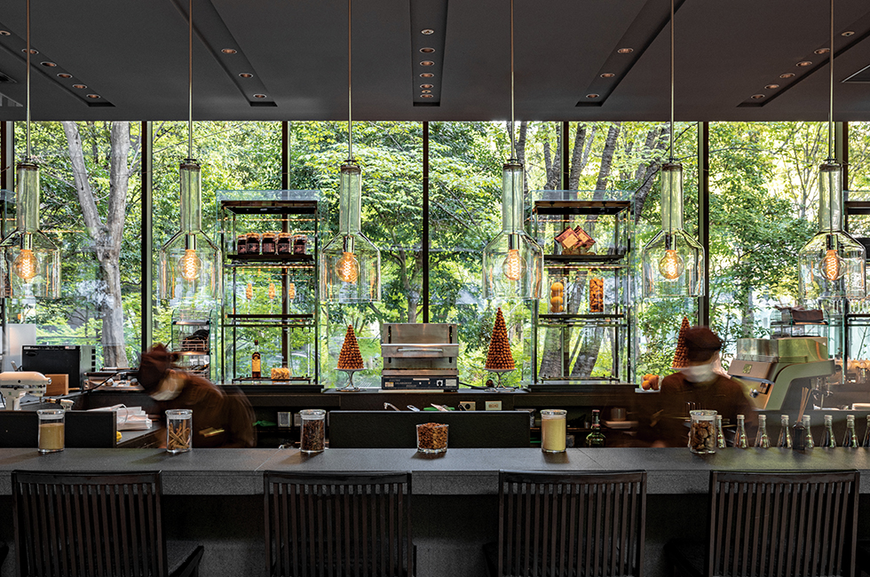 실제로 아만이 일본 다테모노 그룹이 개발을 이끌며 2009년 착공한 현재의 건물에 입주하기로 결정하는 과정에서 회색조의 빌딩 숲 사이에서 자연의 숨결을 불어넣는 오테마치 포레스트의 존재를 결정적인 여건 중 하나로 꼽았다고 한다. 아만 도쿄가 입성하기 10년 전부터 숲을 조성하기 위한 프로젝트가 시작됐는데, 지바현 수목원에서 미래의 도쿄 부지에 어울릴 만한 다양한 생태종의 실험을 통해 미리 숲의 모델을 만든 다음 나중에 이식 작업을 진행했다고. 그렇게 조성된 오테마치 포레스트는 상록수와 낙엽수, 야생화 등 무려 2백 종의 식물로 가득하다. ‘도쿄 사막’이라고 불리기도 하는 이 대도시 중에서도 대기업, 통신사, 금융기관 등이 모여 있는 중심가에서 숨통을 트이게 해주는 오아시스가 따로 없다. 호텔 자체는 오테마치 타워의 최상단 6개 층에 걸쳐 들어서 있지만 이 아담한(3,600m²) 숲을 병풍처럼 두른 단층 건물이 야외에 별도로 자리하고 있는데, 아만 도쿄가 운영하는 프렌치 스타일 카페 ‘더 카페 바이 아만(The Cafe´ by Aman)’이다. 풀 내음 가득한 소담스러운 정원을 즐기며 차를 마시기에 안성맞춤인 사랑스러운 카페로, 숲과 더불어 아만 도쿄의 ‘본체’로 가는 길목에서 긍정적인 첫인상을 자아내는 데 쏠쏠한 몫을 담당하고 있다. 오테마치 타워는 지하철 5개 노선을 낀 오테마치 역과 연결되어 있는데, 지하 아케이드에서 에스컬레이터를 타고 지상으로 올라갈 때도 역시 삭막한 콘크리트 대신 신선한 공기를 머금은 숲의 자태를 마주하게 되고, 운이 좋은 날에는 건물 안팎을 고루 감싸는 포근한 자연광의 세레나데도 느낄 수 있다. 디저트 애호가라면 지하 2층에 위치한 아만의 베이커리 ‘라 파티스리(La Pa^tisserie by Aman Tokyo)’도 기억해둘 만하다. 완성도 높은 몽블랑을 비롯해 일류 파티시에의 솜씨가 돋보이는(투명한 창으로 만드는 과정을 볼 수도 있다) 디저트를 맛볼 수 있는데, 분주하게 움직이는 보행자들이 짬을 내 한 조각씩 ‘픽업’해 가는 모습도 눈에 띈다.