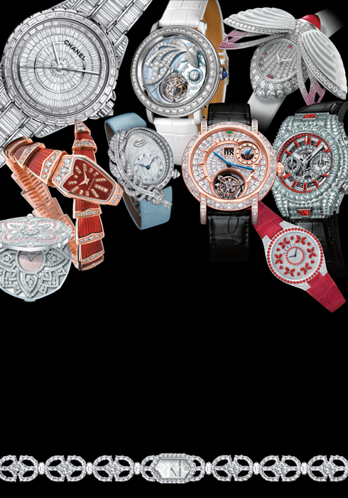 여성용 주얼리 시계의 정수를 보여주는 해리 윈스턴에서 선보이는 일명 파우더 콤팩트 워치. 독특한 형태가 눈길을 끄는 제품으로, 꽃을 모티브로 한 해리 윈스턴의 대표적인 컬렉션 ‘클러스터’에서 영감을 받아 탄생했다. 7백52개의 다이아몬드, 48개의 핑크 사파이어, 5개의 로즈 핑크 진주를 사용한 호화로운 장식을 통해 진정한 럭셔리가 무엇인지 느끼게 해준다. 특히 실제 파우더 콤팩트처럼 거울이 내장되어 시간을 확인하는 동시에 외모를 정돈할 수 있다는 점이 독특하다.