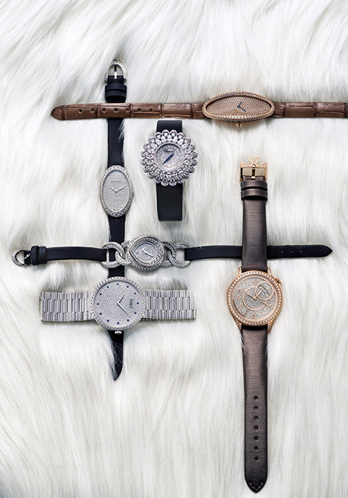 다이얼은 물론 베젤과 케이스 측면, 러그와 러그 사이까지 다이아몬드를 세팅해 화려한 매력을 드러낸다. 1시와 2시 방향 사이에 크라운과 대각선으로 연결되는 오프셋 날짜창을 배치해 기술력과 미학적인 완성도까지 아우르는 제품. 유려한 광택을 발하는 캐슈넛 새틴 스트랩으로 기품 있게 마무리했다. 8천4백만원. 문의 02-3446-0088