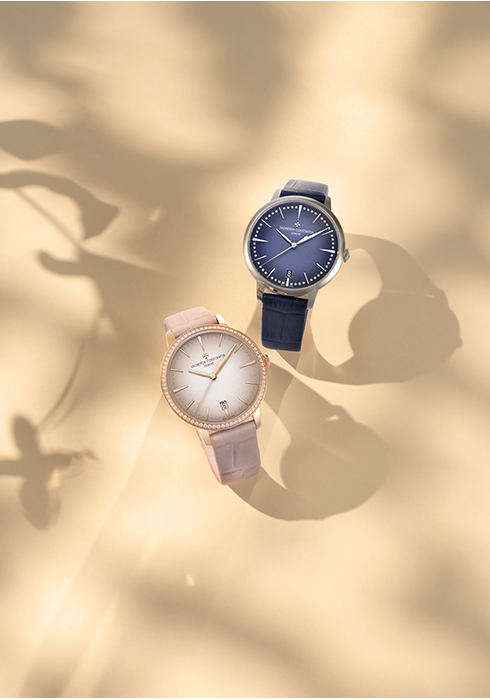 (왼쪽부터) 18K 5N 핑크 골드 케이스에 은은한 블러시 핑크 다이얼과 베젤에 세팅한 다이아몬드로 우아함과 여성스러움을 담았다. 4천6백30만원. 지름 36.5mm 18K 화이트 골드 케이스에 은은한 그러데이션이 돋보이는 딥 블루 다이얼을 매치한 버전 3천6백80만원. 모두 바쉐론 콘스탄틴. 문의 1877-4306