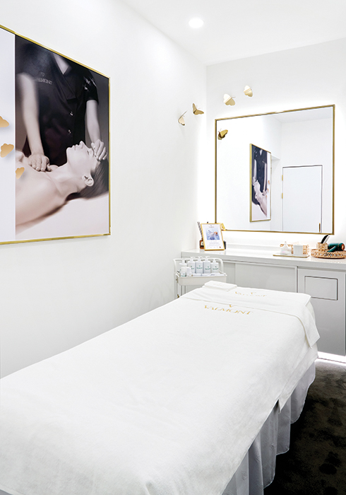 3 화이트와 골드 조합의 인테리어가 고급스러우면서도 아늑함을 전달하는 트리트먼트 룸.