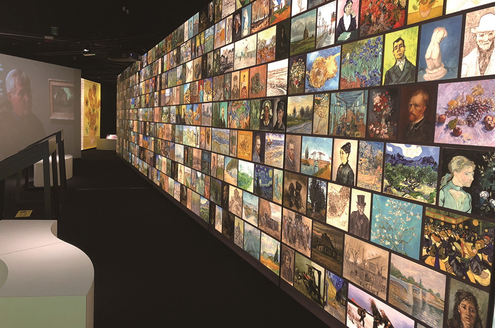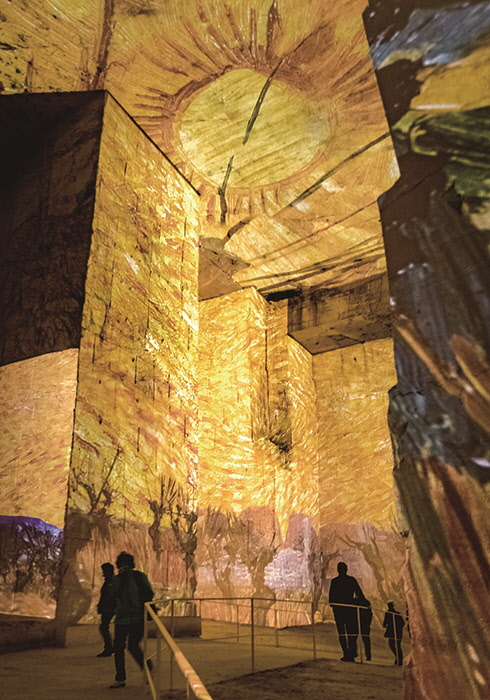 아트와 높은 수준의 3D 프린팅 기술을 활용한 전시 콘텐츠다. 특히 릴리포그래피라는 특허기술 등을 활용해 작품의 실물 크기는 물론 물감의 결, 두께 등을 그대로 살린 ‘뮤지엄 에디션’은 테크놀로지를 콘텐츠로 잘 적용한 사례다. 얼마 전 한국에서도 <빈센트 반 고흐를 만나다>라는 ‘체험형 전시’로 소개된 바 있다. 영화 세트장 같은 구성으로 그의 삶을 돌아보게 함으로써 흥미를 북돋우고 원화 전시라면 도저히 불가능한 ‘작품 터치’를 통해 고흐의 붓 터치나 질감을 느껴볼 수도 있어 호응도가 높았다. 반 고흐 미술관의 악셀 뤼거 디렉터는 많은 소장품이 손상의 우려, 운송의 제약 등으로 외부로 나가는 일이 극히 드물기에 반 고흐를 소개할 새로운 방법을 고민해왔다며 최신 오디오 비주얼 기술 덕분에 작가의 삶과 예술적 발전등을 조명하는 여행에 많은 이들을 초대할 수 있게 됐다고 강조했다. 음악이 강력한 매혹으로 작용하는 미디어 아트 전시도 있다. 공간의 벽과 천장, 바닥에 이미지가 투사되는데, 작품을 배경으로 하는 장면이 마치 춤을 추듯 계속 바뀌면서 ‘몰입 체험’의 묘를 보여주는 전시로, 프랑스 문화 예술 기업 컬처스페이스(Culturespaces)가 운영한다. 현재 프랑스 남부의레보드프로방스와 파리에서는 <반 고흐의 별이 빛나는 밤(Van Gogh_Starry Night)>전이 열리고 있는데, 특히 레보드프로방스의 경우에는 폐쇄된 채석장의 커다란 석회암을 캔버스삼아 펼쳐지는 환상적인 멀티미디어 쇼가 일품이다. 이 역시 3D 음향 등에서 차원이 다른아미엑스(AMIEX) 기술 덕분에 가능한 21세기형 콘텐츠다. 한국에서도 프랑스 컬처스페이스와의 제휴를 토대로 지난해 말 제주도 성산에 이 같은 콘텐츠를 즐길 수 있는 공간인 ‘빛의벙커’가 들어섰다. 인기몰이를 하고 있는 <빛의 벙커: 클림트>전이 오는 10월 27일까지 계속되는데, 오는 12월에는 반 고흐를 폴 고갱과 더불어 만나볼 수 있을 전망이다.