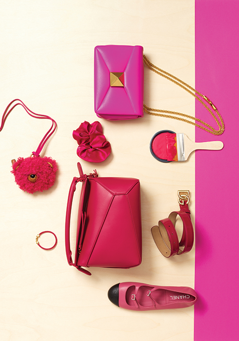 액세서리 하나만 잘 고르면 올해의 컬러 비바 마젠타를 세련되게 매치할 수 있다.