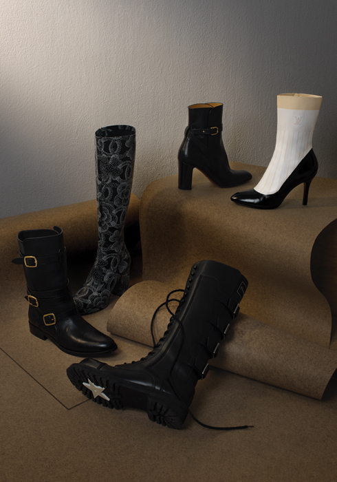 카프 스킨 소재 무릎까지 오는 길이의 레이스업 스타일로 모던한 룩에 록 시크적 스타일리시함을 가미해줄, 밑창 별 디테일의 디올라벨(DIOREBEL) 부츠 가격 미정 디올. 문의 02-3280-0104.날카로운 아몬드 토 디자인과 3개의 버클로 마무리한 가죽 스트랩 장식이 포인트인 웨스턴 스타일 리라 트리플 버클 부츠 가격 미정 셀린느 바이 에디슬리먼. 문의 1577-8841.아이코닉한 까멜리아 플라워와 샤넬 로고를 프린팅한 카프 스킨 소재의 하이 부츠 가격 미정 샤넬. 문의 080-805-9628, chanel.com.버니싱 처리한 풀 그레인 송아지가죽으로 제작해 근사한 광택과 풍부하고도 입체적인 색감을 선사하는 틸튼 웰링턴 버니시 부티. 이퀘스트리언 헤리티지를 모던하게 재해석했으며, 폴리싱 처리한 골드 톤 스터럽 버클로 고정하는 랩어라운드 앵클 스트랩이 특징이다. 1백70만원대 랄프 로렌 컬렉션. 문의 02-3467-6560.2023 F/W 패션쇼에 등장했던 부츠로 핸드 페인팅으로 완성한 트롱프뢰유 슈즈와 삭스 디자인에 리브드 디테일, LV 이니셜을 더해 완성한, 초현실주의 미술에서 영감받은 일루전 앵클부츠 3백50만원대 루이 비통.문의 02-3432-1854