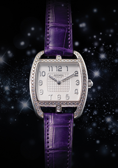 올해 새롭게 선보인 실버 소재 케이스에 다이아몬드를 세팅한 버전. 스무스 울트라 바이올렛 악어 스트랩을 매치했다. 화려한 디테일이 인상적이다. 2천만원대.