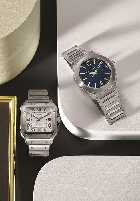 까르띠에 산토스 드 까르띠에 워치 1904년에 탄생해 1백 년이 넘는 시간 동안 까르띠에를 대표하며 큰 사랑을 받아온 산토스 워치. 케이스 디자인만으로도 브랜드를 알 수 있을 만큼 상징적인 남성 시계로, 올해 특허 출원한 퀵 스위치와 스마트 링크 시스템을 더해 더욱 스타일리시하고 편리한 기능으로 업그레이드했다. 스트랩 아래 위치한 퀵 스위치를 통해 스트랩을 손쉽게 교체할 수 있고, 스마트 링크 시스템으로 별다른 도구 없이 브레이슬릿의 길이를 조절할 수 있다. 8백30만원대. 문의 1566-7277